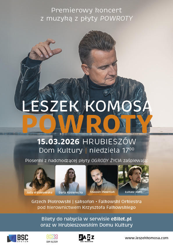 Koncert „POWROTY” to sentymentalna podróż muzyczna do lat dzieciństwa i młodości kompozytora Leszka Komosy. To także jego powrót do rodzinnego miasta Hrubieszowa i świata muzyki, który tu się narodził.